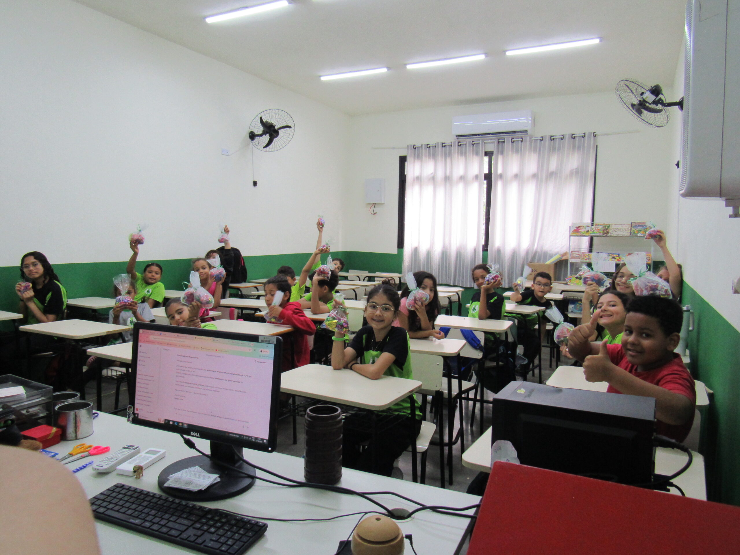O encerramento da semana foi marcado com muita alegria, com os brinquedos infláveis na quadra e um lanche coletivo, com bolo de chocolate e pão com salsicha, celebrando de forma afetiva e divertida essa data tão significativa.